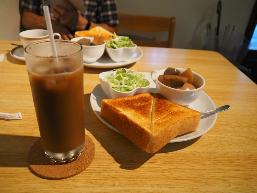 アイスコーヒーにトーストとサラダ、そしておでんがセットになっております♪