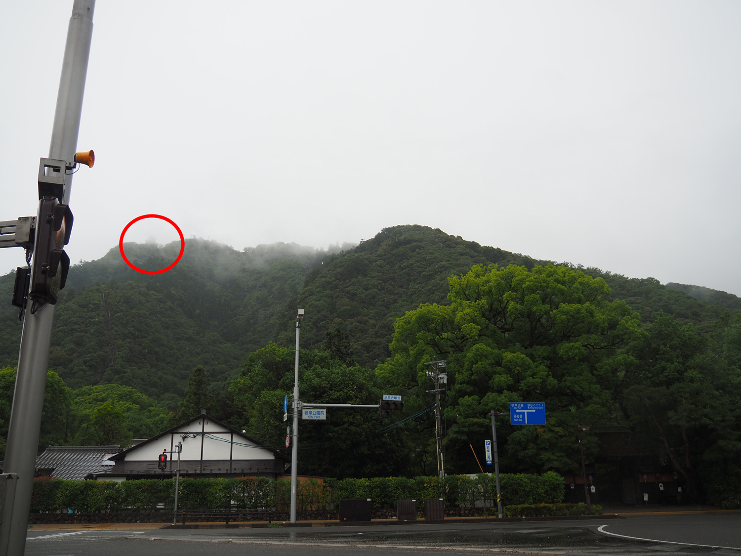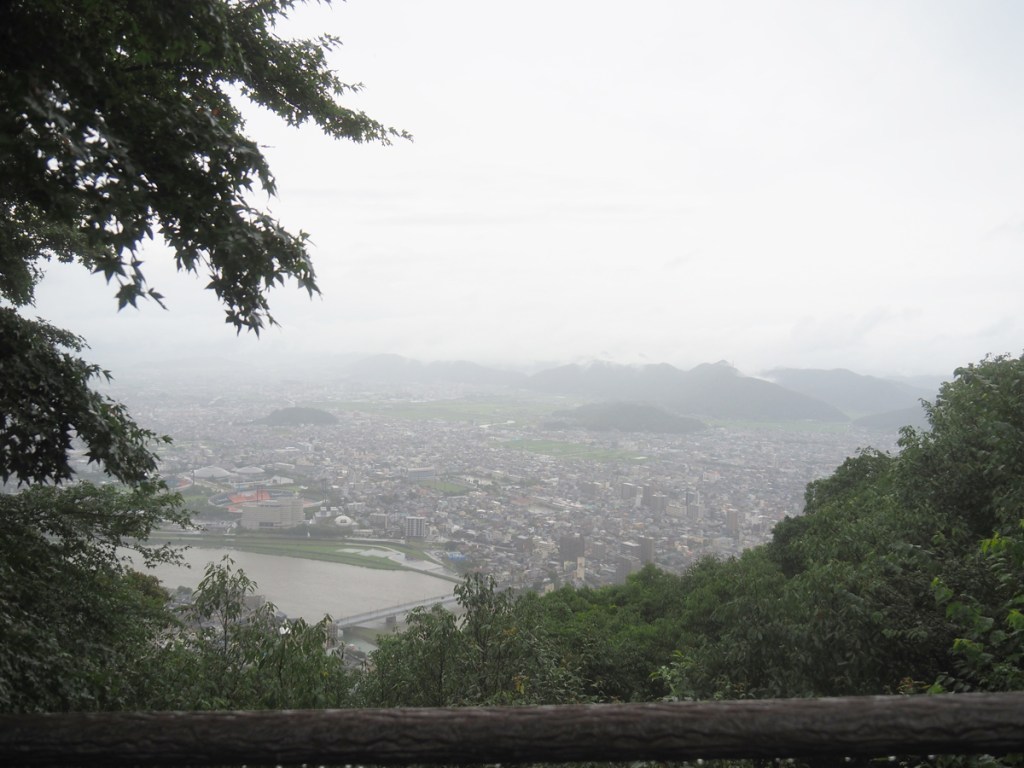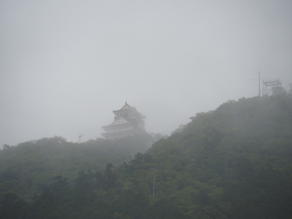 雨は少し弱まりましたが、金華山の山頂に聳える岐阜城の天守は霞がかっています。