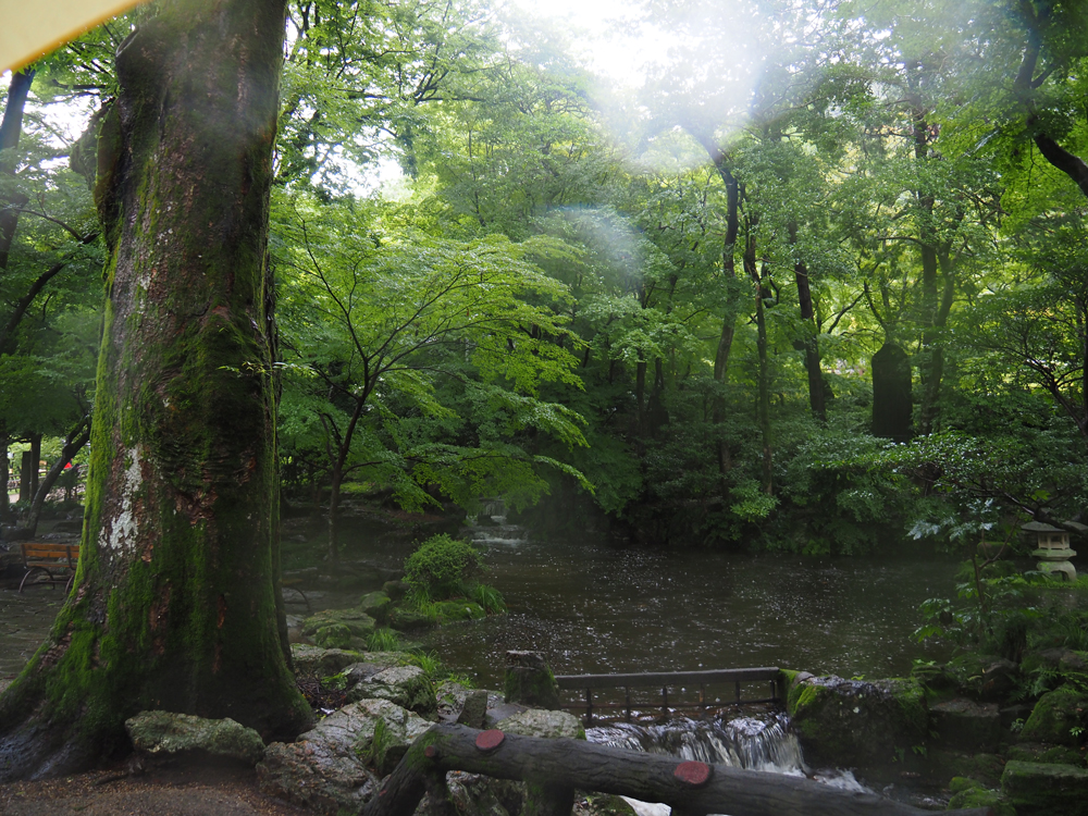 少し雨足がましになるまで雨宿りすることにいたします。