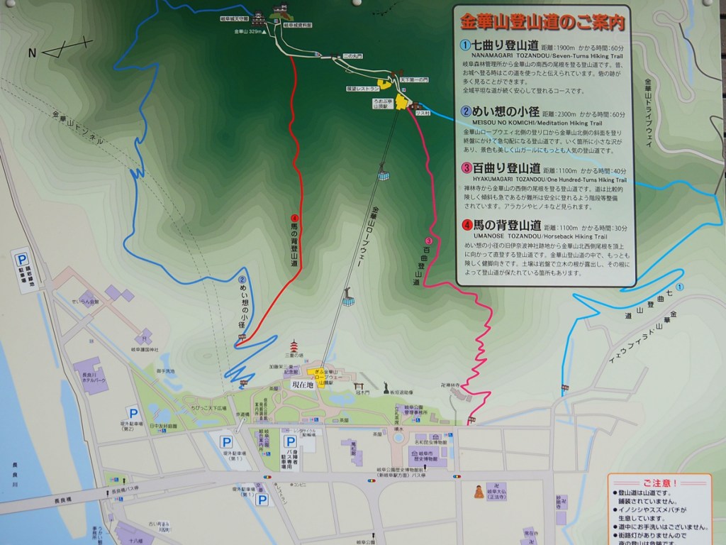 岐阜公園は金華山山麓にひろがる公園で、 園内そして近隣の施設に岐阜市歴史博物館、加藤栄三・東一記念美術館、名和昆虫博物館、円空美術館などがあります。金華山へ登る前に歴史博物館に立ち寄りたかったのですがなんとこの日は祝日明けの臨時休館💦と言う事でロープウェー乗り場へ。