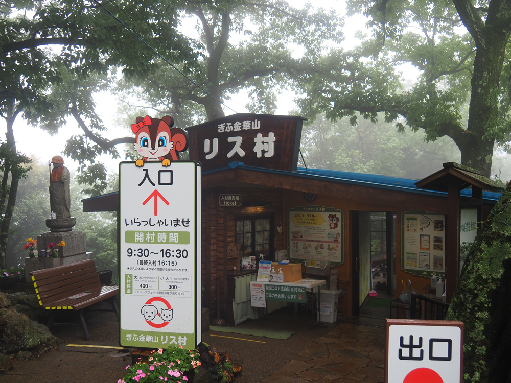 標高280mに位置する山頂駅の前にはリス村があります。昭和11年岐阜公園を中心に「躍進日本大博覧会」が開催されたときに多数持ち込まれたタイワンリス。金華山には、リスの食べるシイの実やドングリの実が豊富で、他に天敵も少なくリスの環境には大変良い場所だそうです。