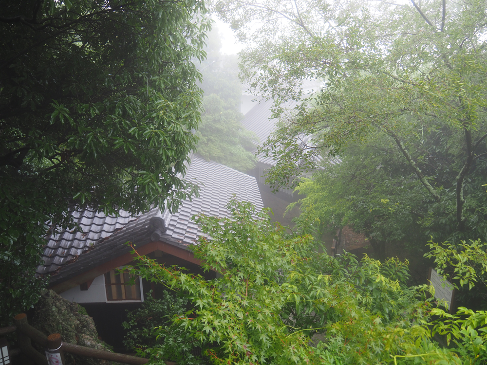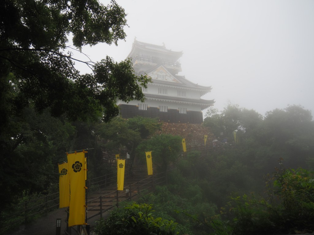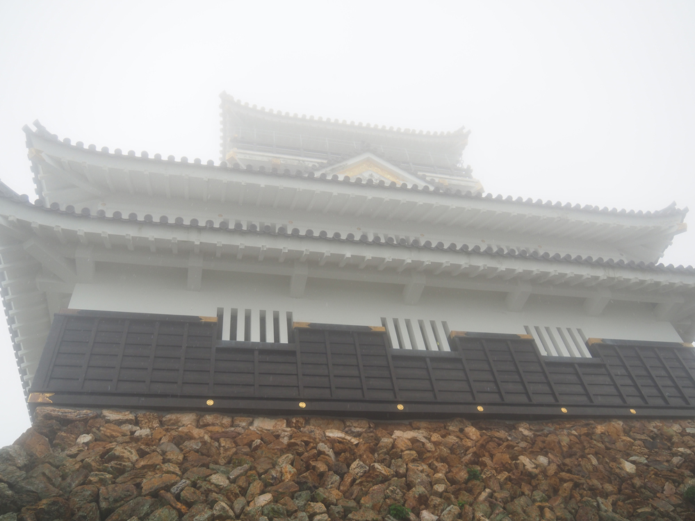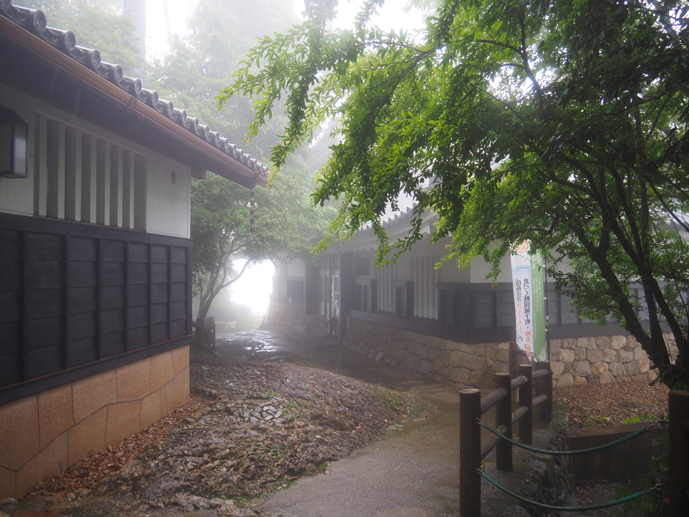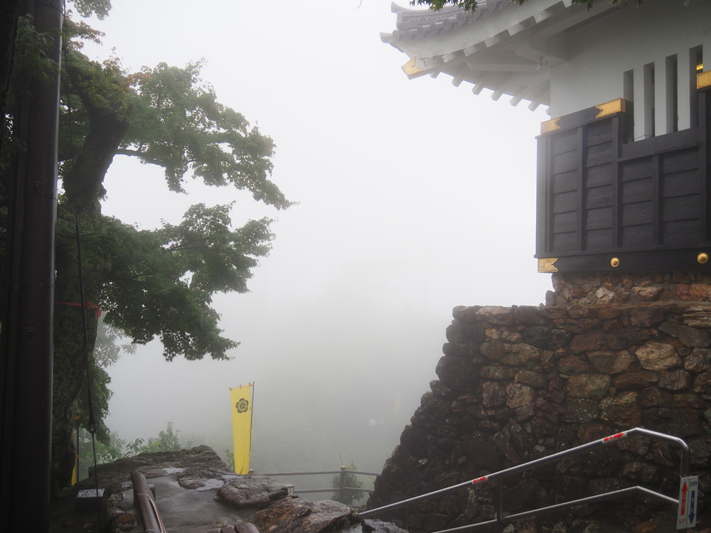 さて我々は、天守まで登って行きます。約歩いて10分ほどでしょうか。天気が良ければ良かったのですが、、、雨と霧で湿度も高く汗だくになりながら進みます。