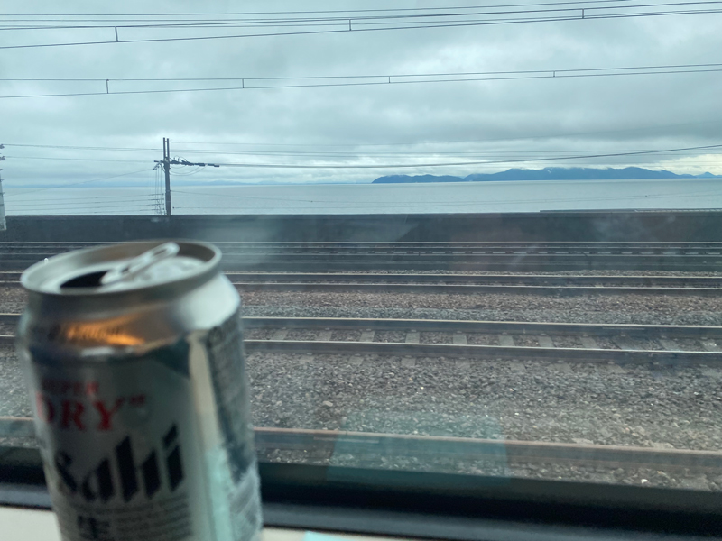 サンダーバードは湖西線を経由し、高架線から北上して行く琵琶湖を望むのが旅情感を掻き立てます。