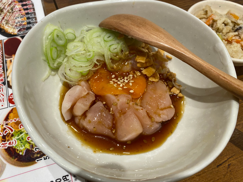 甘辛の伝串に、鶏だしおでんと鶏ユッケを注文。