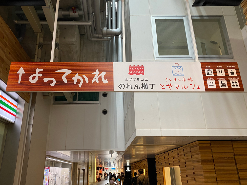 駅ビルの東へ歩くと「とやマルシェ」があり、その中に「のれん横丁」と言う飲食店街があります。