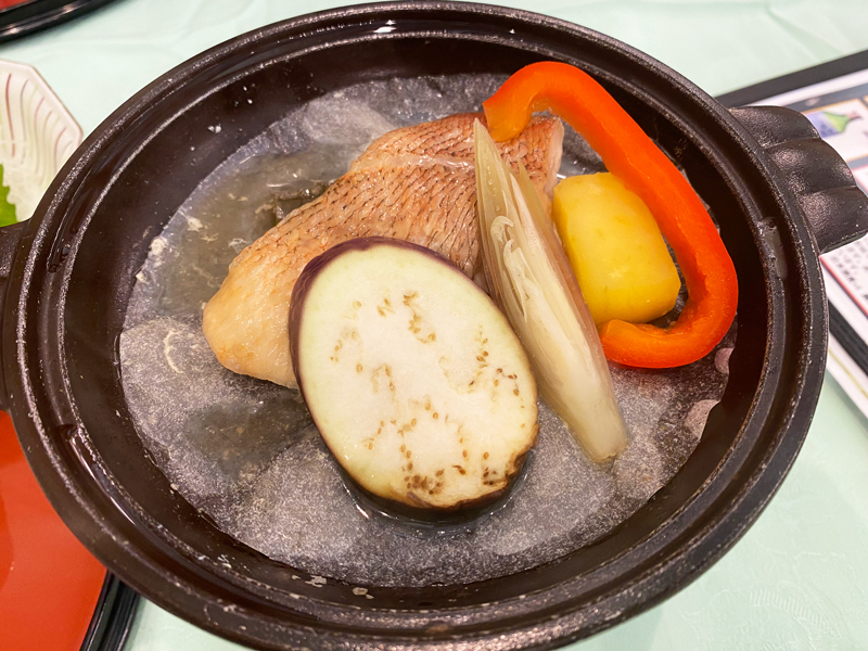 前菜と赤魚の蒸し物が、地酒に合います♪
