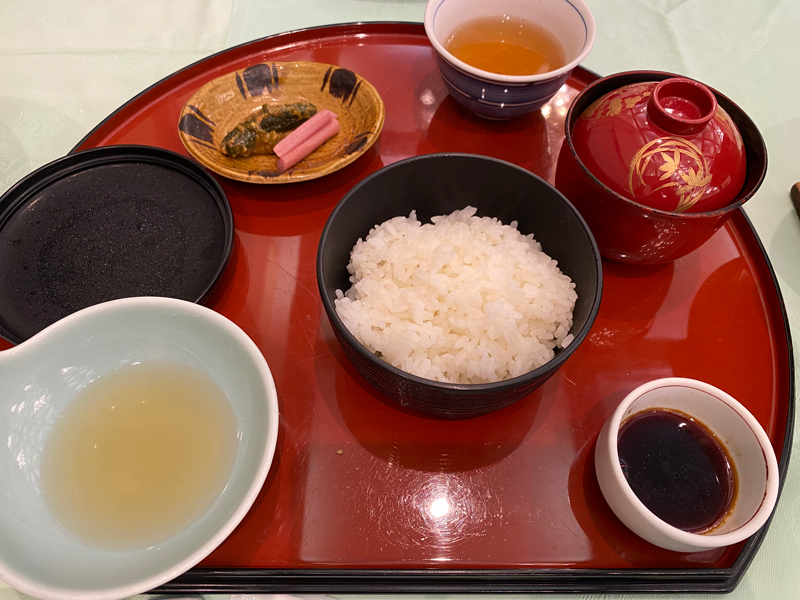 ほろ酔い加減の後、米どころの白米に漬物がこれまた美味い🍚