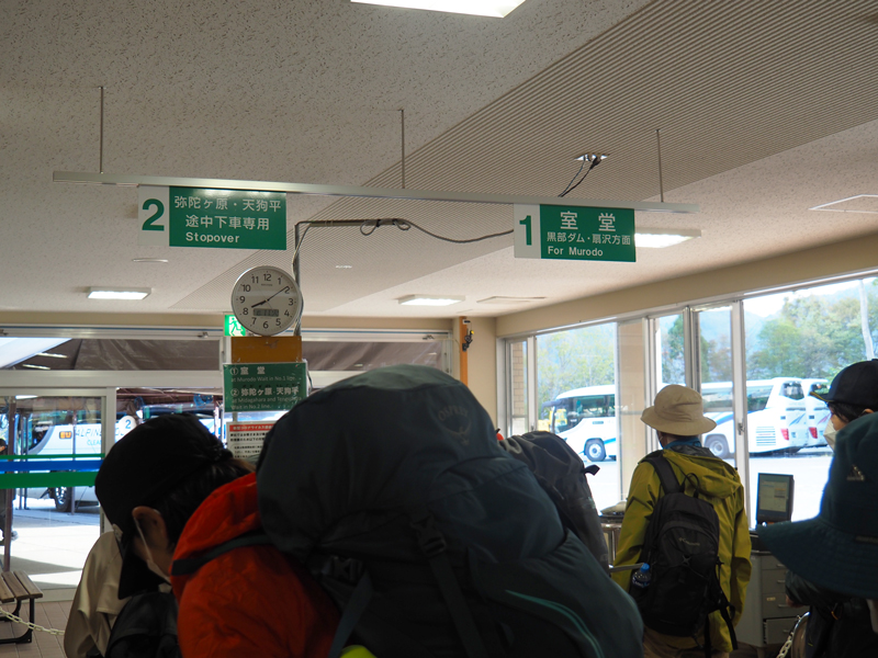 バスの種類は室堂直行タイプと室堂までの途中下車ができるタイプと2種類あり、室堂直行バスはお客さんの人数に応じて台数が増発したりして出発しているみたいです。