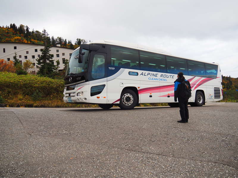 アルペンルート美女平から室堂区間、これから通る高原バスの途中駅にはホテルや山荘などの宿泊施設があり、単なる交通ルートではなく登山、散策、トレッキングなど観光を主とした交通路なんですね。