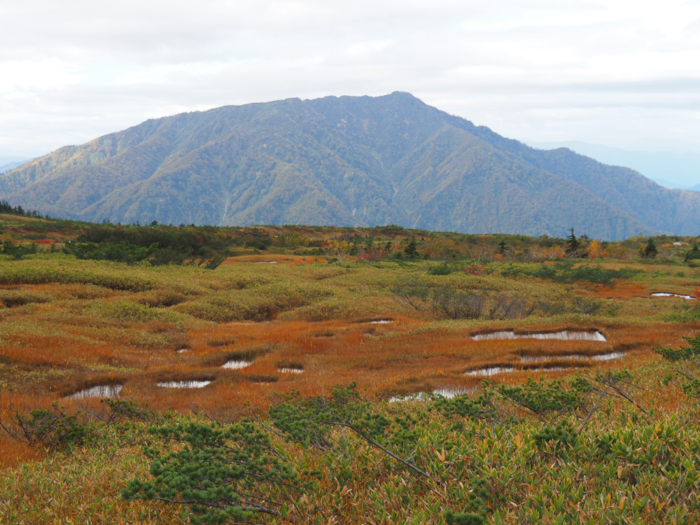 この水たまり池塘(ちとう)と呼ばれ、堆積した泥炭層の隙間が水で涵養された部分ができます。高層湿原が形成される過程できる池です。通称(ガキ田)と呼ばれています。