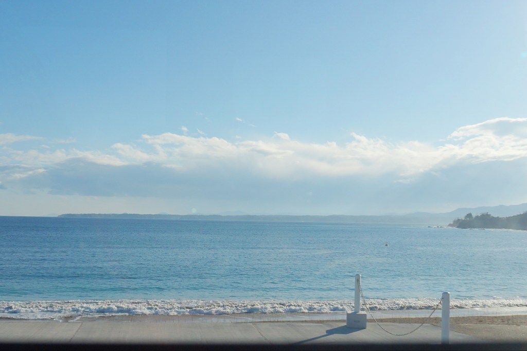 大谷海岸は昨年2021年の夏に11年ぶりに海水浴場として復活を遂げた海岸。太陽の光がキラキラ美しい海沿いの一般道を走ります。