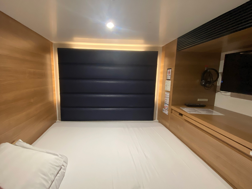 全室上下二段のカプセルタイプのお部屋が並びます。3500円~とリーズナブルです。