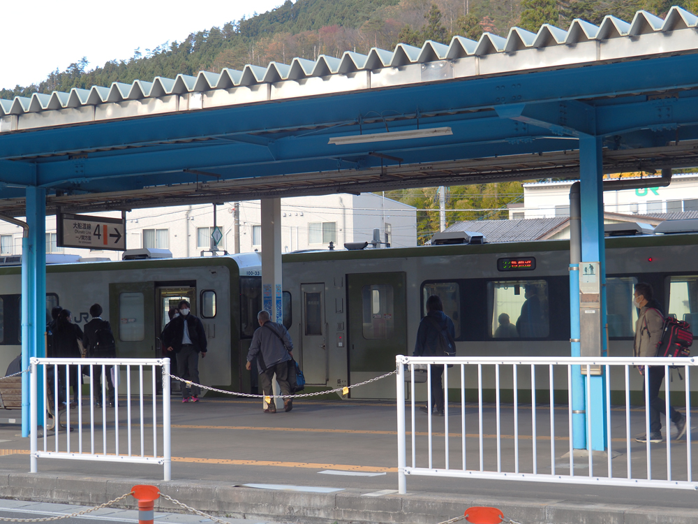 バスを降りると向かい側には、JR大船渡線のホームがあり改札を出ることなくそのまま乗車する事が可能です。