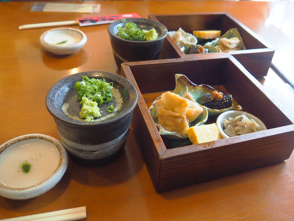 麺はもっちりしており、普通のお蕎麦とはまた違った食感が楽しめました。またお蕎麦と一緒に付く総菜が素朴ながらお蕎麦の箸休めに丁度良かったです(^^♪