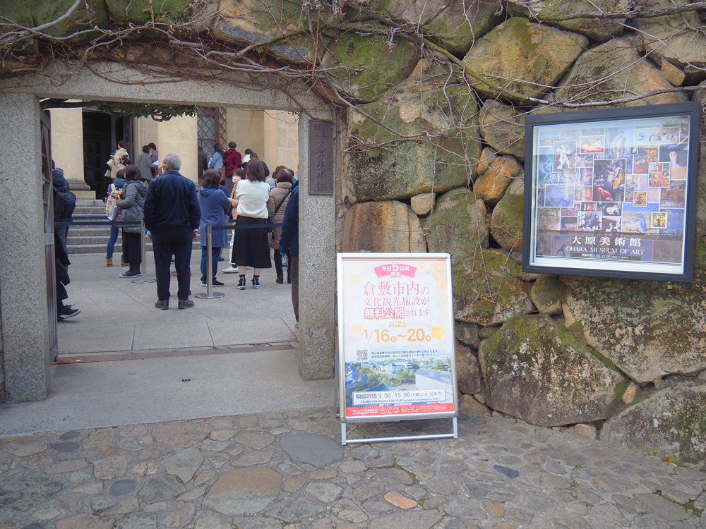 本日は1月17日で、2023年1月16日から20日まで倉敷の文化施設がほとんど無料で入館できると言う催しがあったのでした。