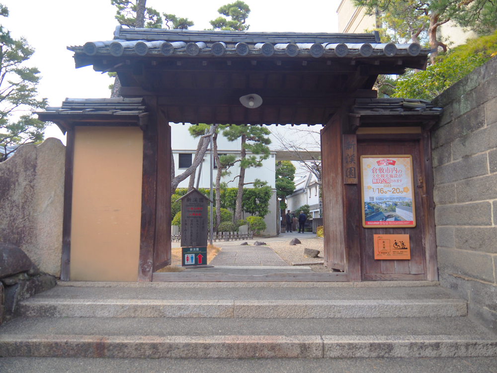 園内は明治26年、倉敷紡績(現クラボウ)の初代社長大原孝四郎氏(孫三郎の父)の別荘として建設されたもので、現在は「敬倹堂」と本格的な茶室を備えた「游心亭」があり、広く市民に開放され、茶会の名所にもなっています。