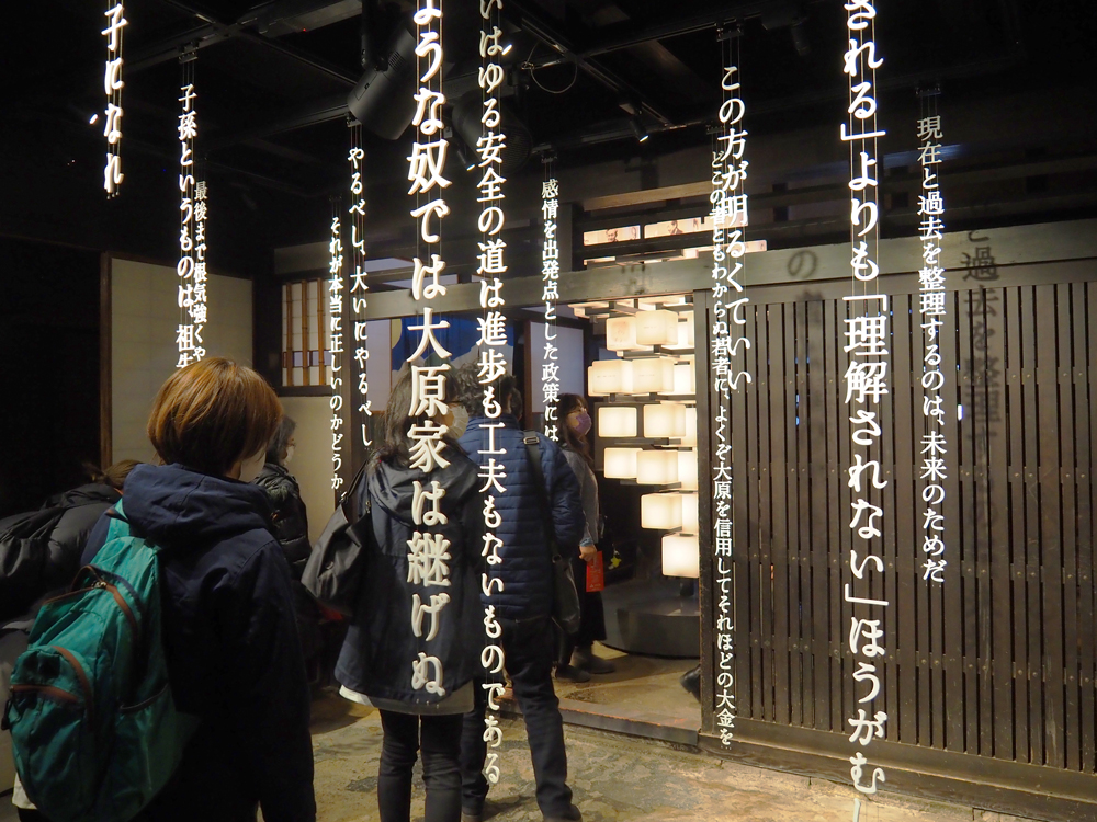 館内は撮影はOKで、この様に工夫された見せ方やデザインで大原家の歴史や展示品を直感的に見て回ることが出来ます。