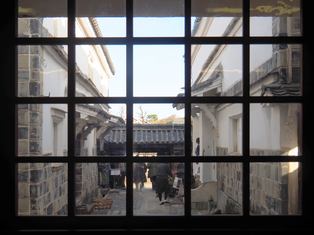 西門から入ると代官所内壕遺構や倉紡記念館を立ち寄りながら訪れることが出来ます。