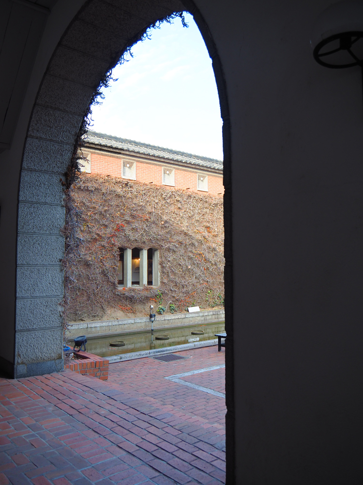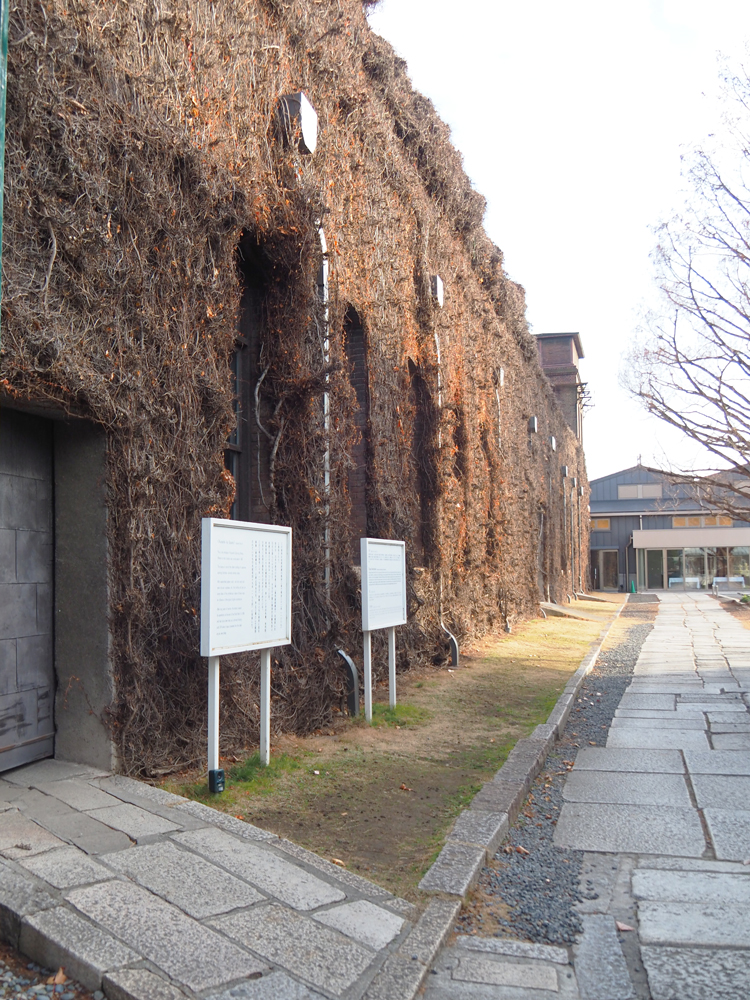 冬の時期は茶色い蔦で今一つ見栄えが良いとは言えませんが、夏時期になるとレンガの茶色に緑のアイビーが広がり美しい倉敷美観地区の観光スポットです。