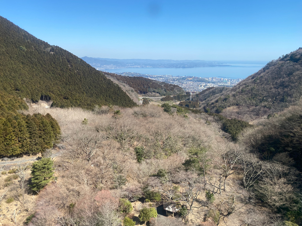 しばらく進行方向右手に後方に別府湾と別府の街並みが見えてきました。