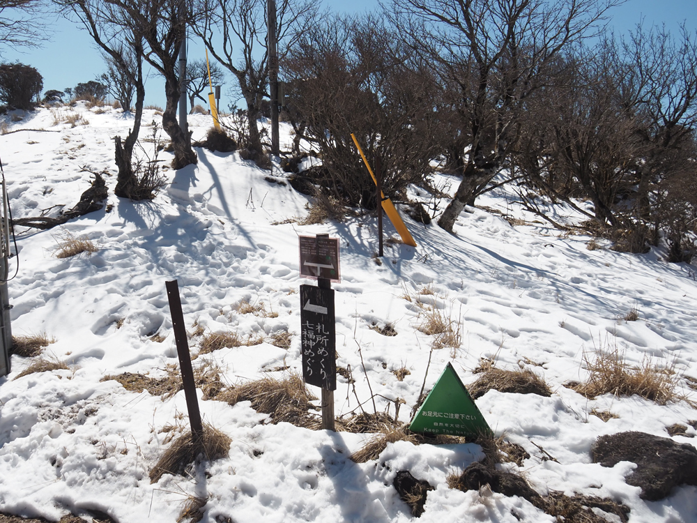 山上駅からは高低差80m程ですが、山頂に近づくにつれ、雪が残り少し歩きづらくなってきます。