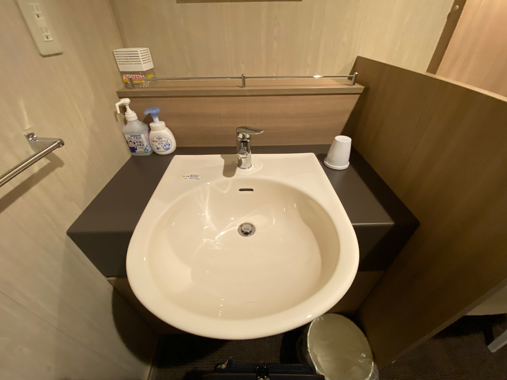 トイレ、シャワーは付いておりませんが、一人では充分な広さともちろんドアにはロックが付いていますのでプライベートが保たれた部屋です。