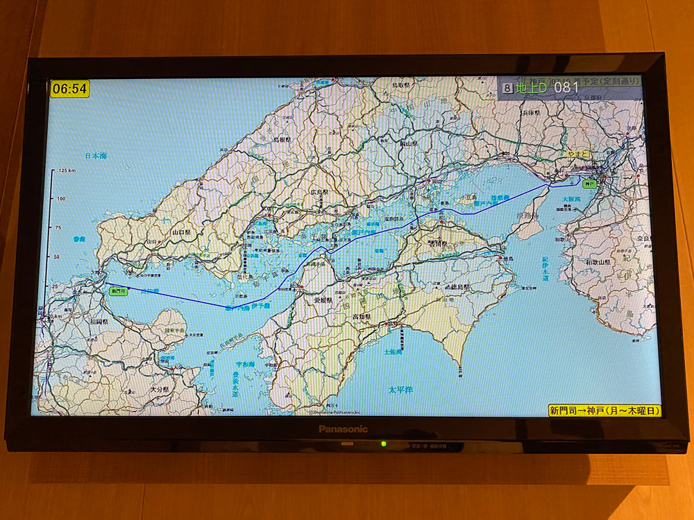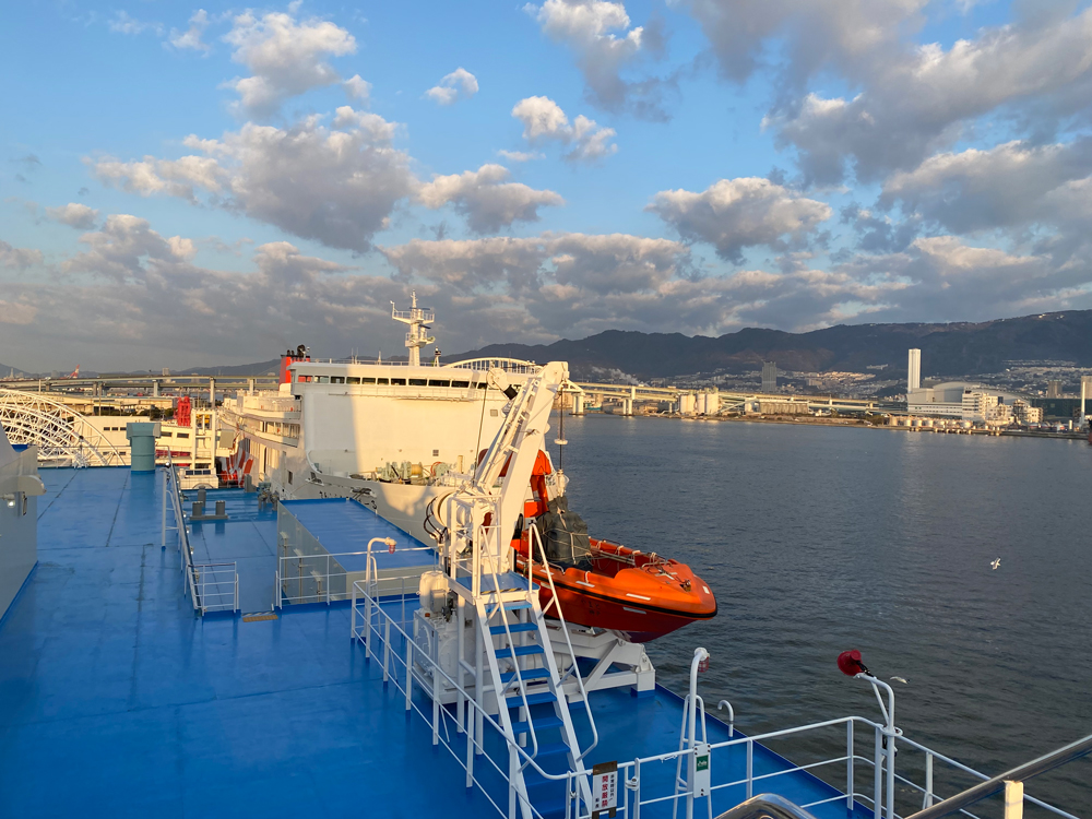 神戸港着岸は翌朝7:10ですので、これから12時間半の船旅が始まります🚢