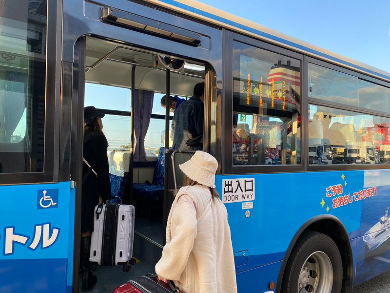 こちらの出航時間が北九州門司港を18:40発で、小倉駅から無料の連絡バスが発着しております。バス時刻が17:20なんですよね。