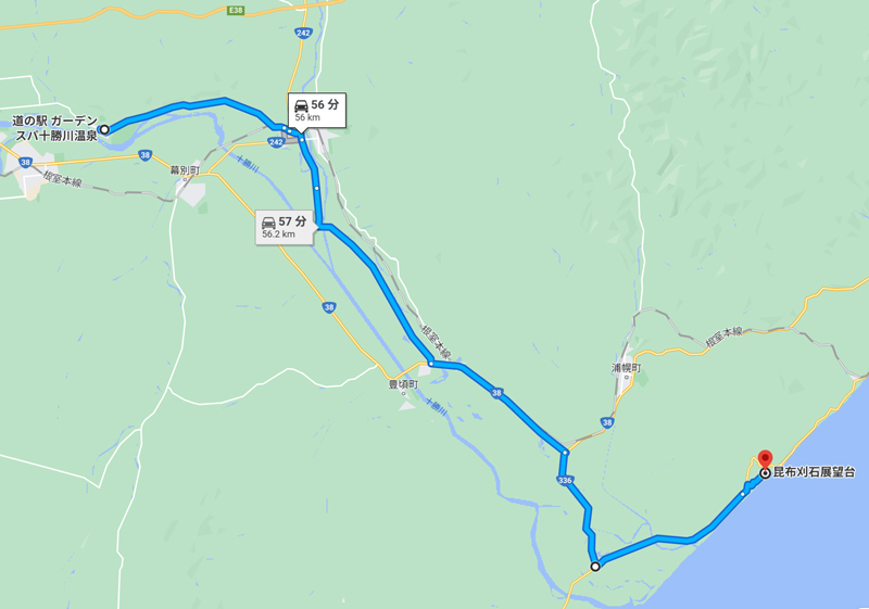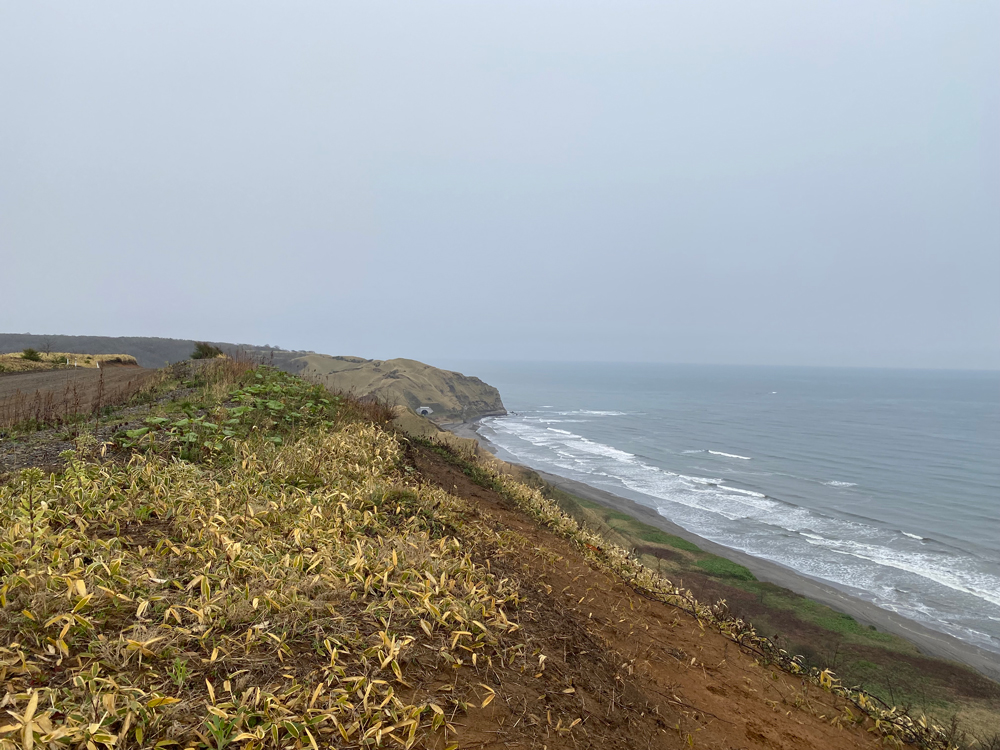 浦幌町へ入ると十勝川の河口付近から再び国道336号へ合流し太平洋沿いを走ります。途中、昆布刈石展望台と言う絶景スポットに立ち寄るため、ダート道へ入ります。