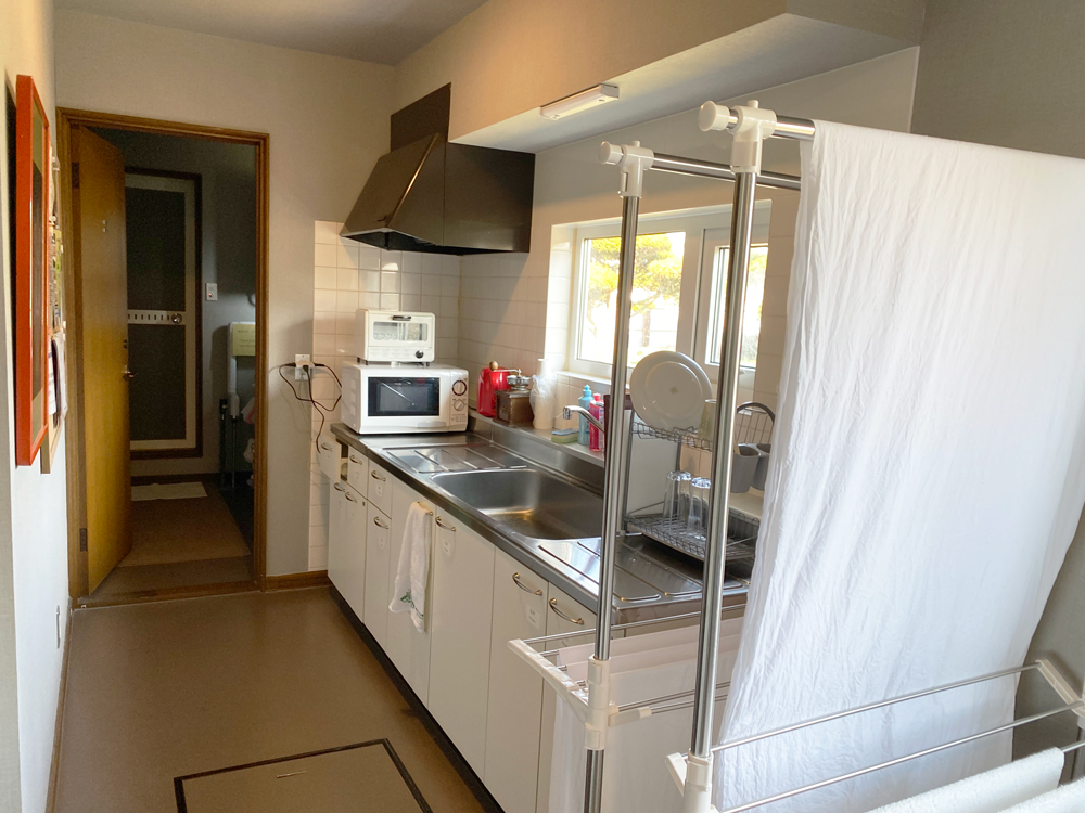 キッチンには調理器具などが利用できるようでした。お風呂シャワーもあります。あとランドリーと乾燥機があるので着替えを洗濯したり便利です。
