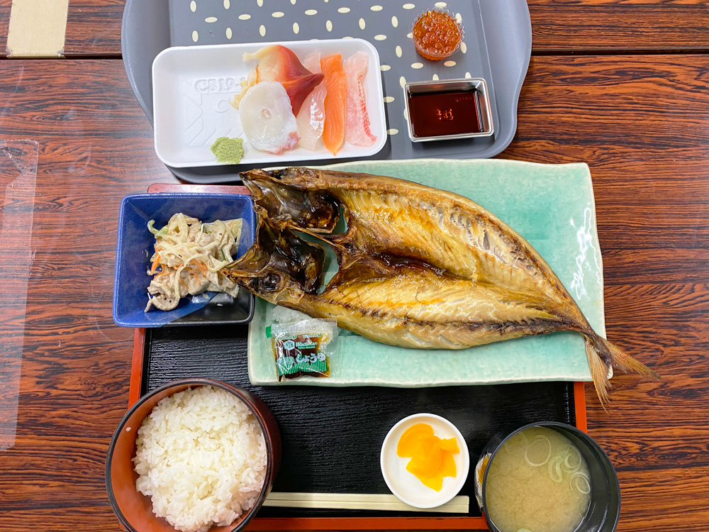 一通りぐるっと回ると、予算と朝飯と言う事が脳裏を巡り、気持ち的に焼き魚の気分になって来ました。悩んだ結果、