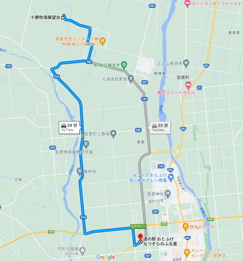 ここからは、十勝平野を南東へ降り一旦太平洋側へ出るルートで向かいます。