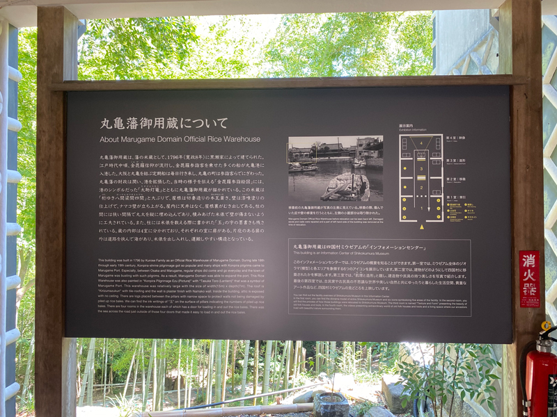 丸亀藩の御用蔵を利用した建物内は冷房がしっかり効いており、映像を見ながら四国村の案内やそれぞれの建物の説明などをインプットします。かつての四国での暮らしが良く分かります。