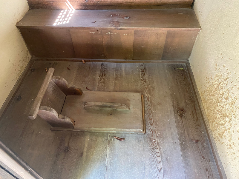 山下家住宅の横に、徳島県美馬市脇町から移築された森野家住宅の風呂と便所があり、昔は母屋とは別に、離れて作られた風呂と便所がありました。