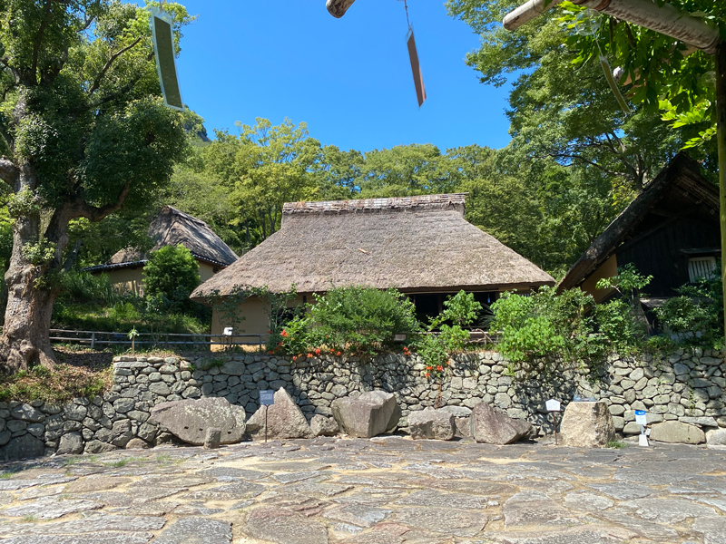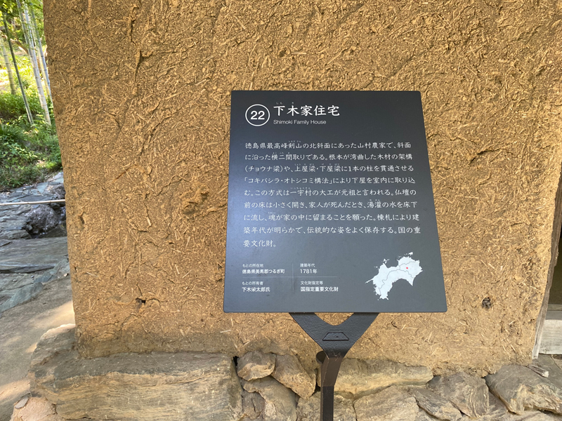 一際大きな茅葺屋根が見えてきました。徳島県西部に位置する剣山中腹の一宇地区から移築された、寄棟造・茅葺きの民家、下木家住宅です。