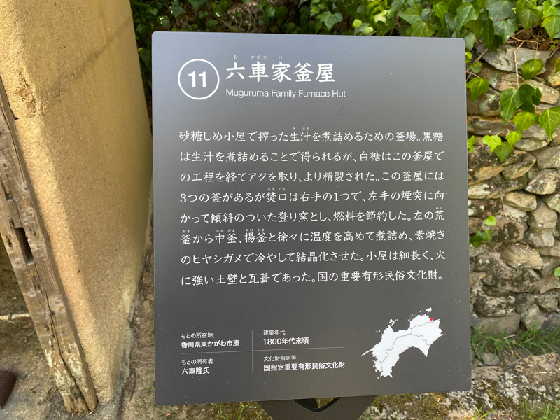 かつて香川県では「讃岐三白」と呼ばれた 砂糖・塩・綿の生産が盛んで、特に「和三盆糖」で知られる香川の伝統的な砂糖はこの様な建物で製造されていました。