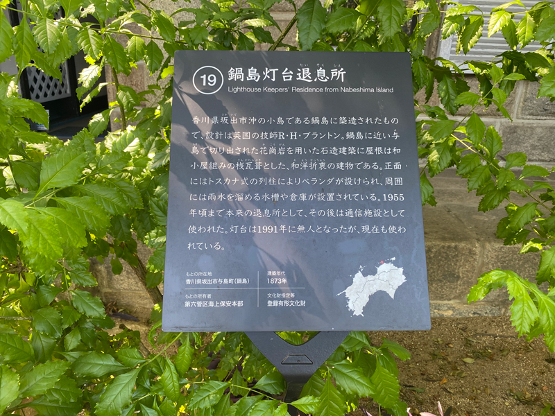 そこから奥に向かって灯台守の家族が寝泊まりするための灯台退息所が3棟並びます。手前から淡路島の北端にあった江埼灯台退息所、香川県坂出市の沖にある鍋島灯台退息所、愛媛県松山市沖のクダコ島灯台退息所。