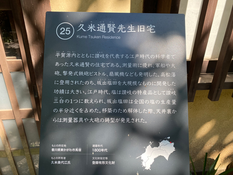 さて下りが続きまして、到着したのは平賀源内と共に讃岐を代表する江戸時代の科学者・久米通賢(くめ みちかた、もしくは つうけんと読む)の住宅です。