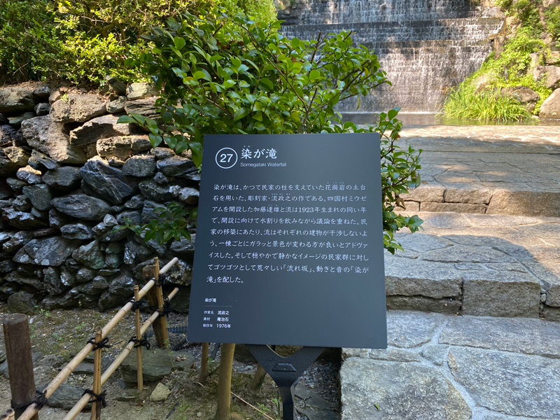 石組と同じく彫刻家の流政之 が設計した、幅12mの石と水による芸術作品が広がります。