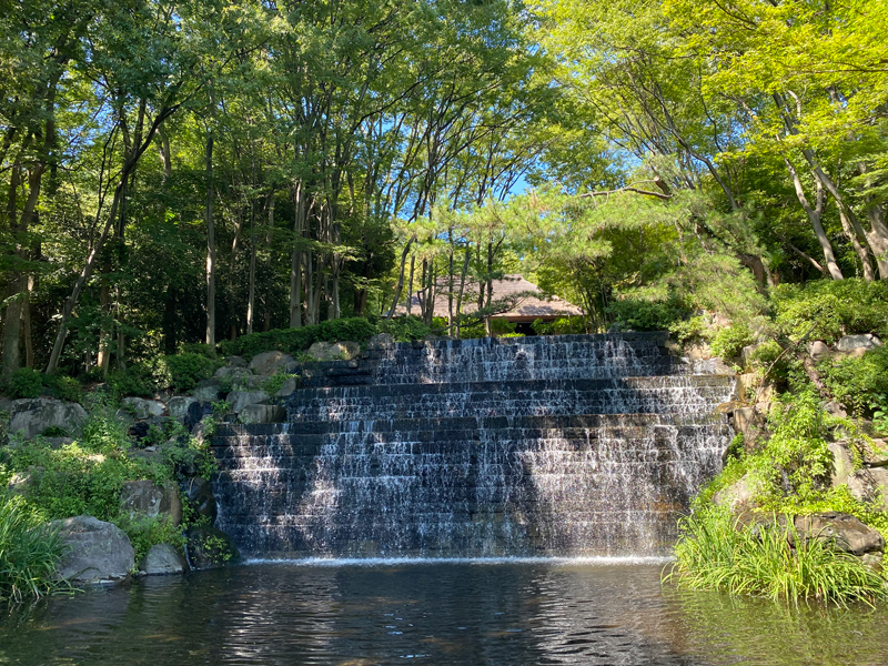 流れ落ちる滝と心地よい風が吹きなんとなく涼しい感じ。
