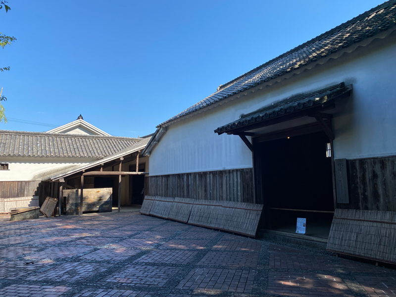 坂を下り切ると、大きな醤油蔵が立ち並びます。