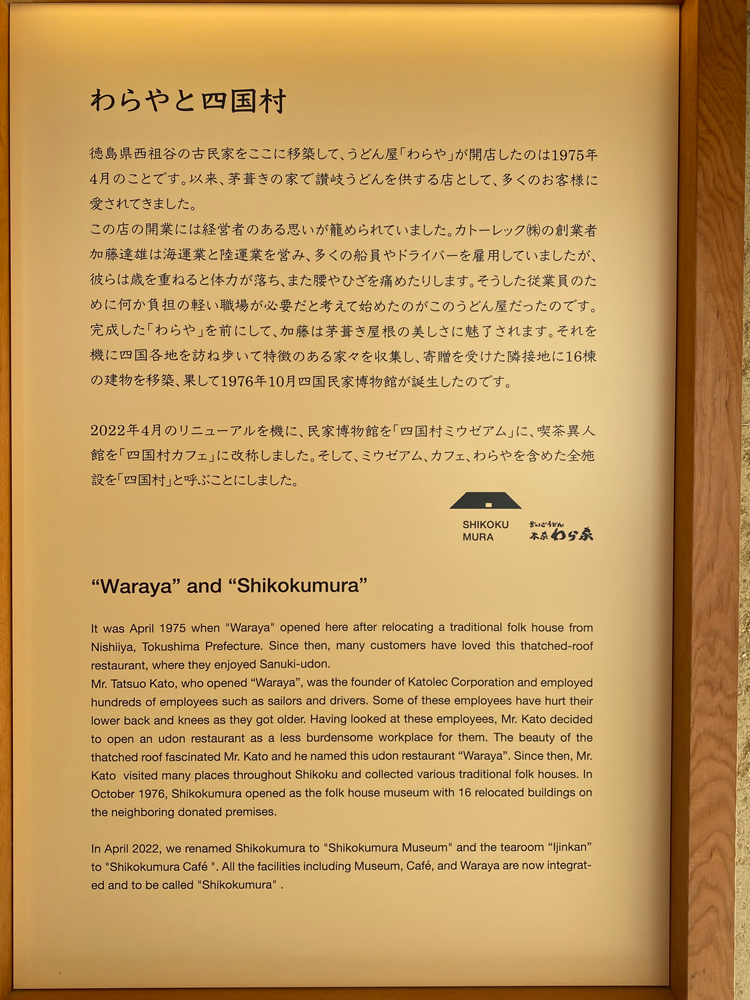 四国村の操業と同じくカトーレックが営業するお店で、うどんで有名な事業は「加ト吉の冷凍うどん」で知られています。私も昔からよく食べていました。
