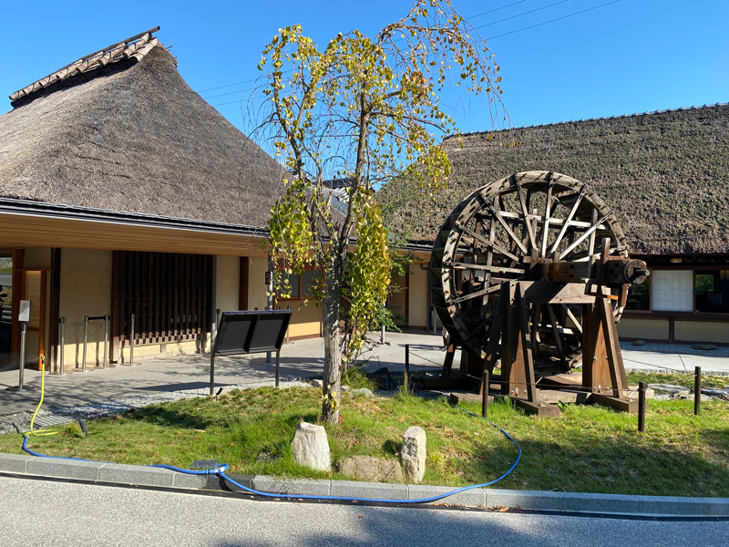 池を回ると見えてくるのが添水唐臼と呼ばれる、穀類を精白するための装置として使われていた小屋。
