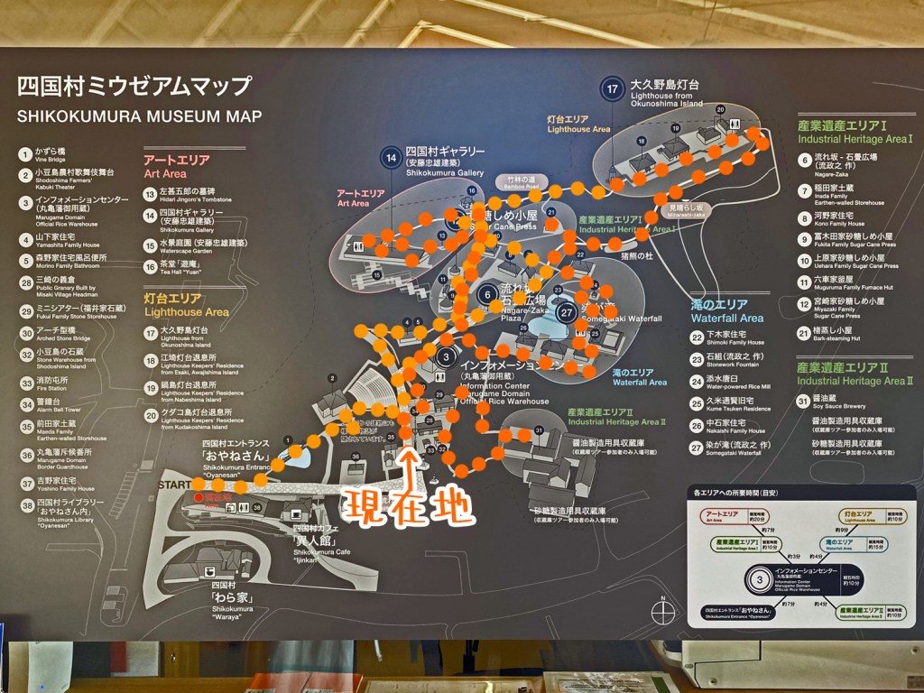 さて、たどってきた個所をマップに示してみましたが、もはやどのように歩いたか図で見ても分かません💦ただ、入場してから2時間以上すでに歩き続けたという事は確かです。
