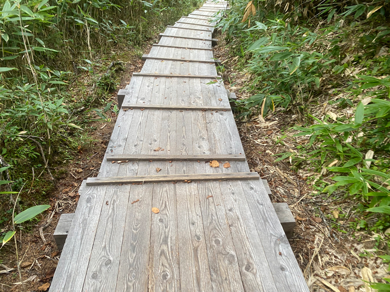 約15分ほど登り階段を進むと段々となだらかな木道に変わってきました。
