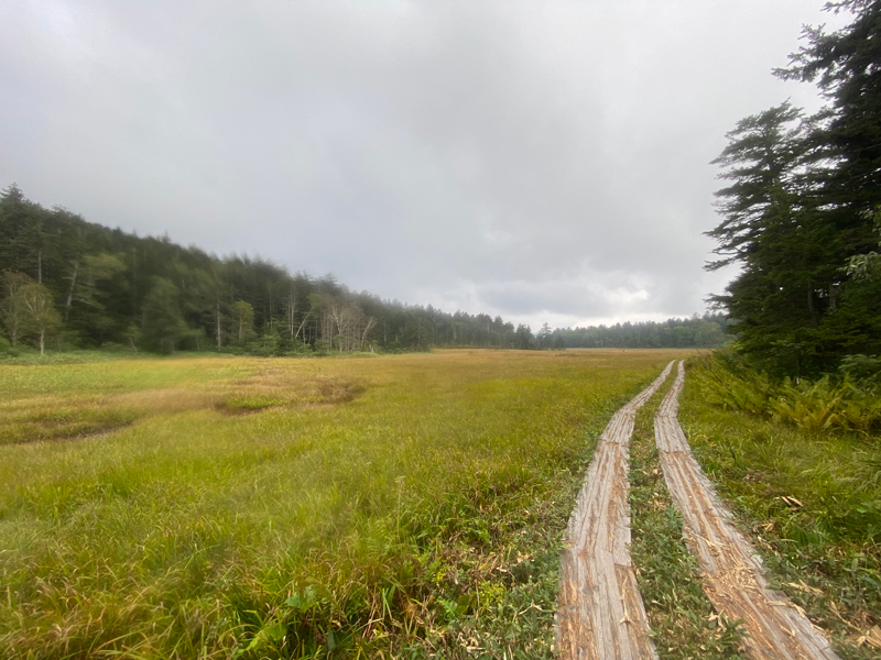 獣除けのゲートを通り抜けると、広大な湿原地帯に風景が一転いたします。