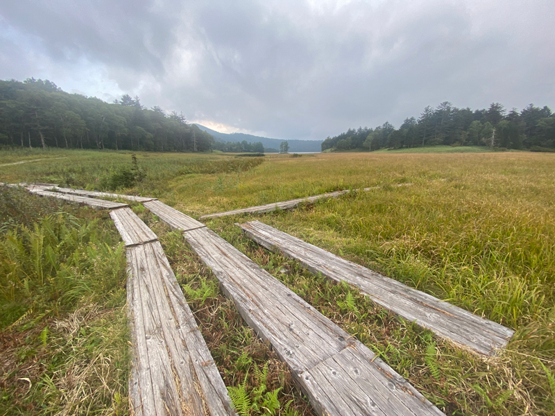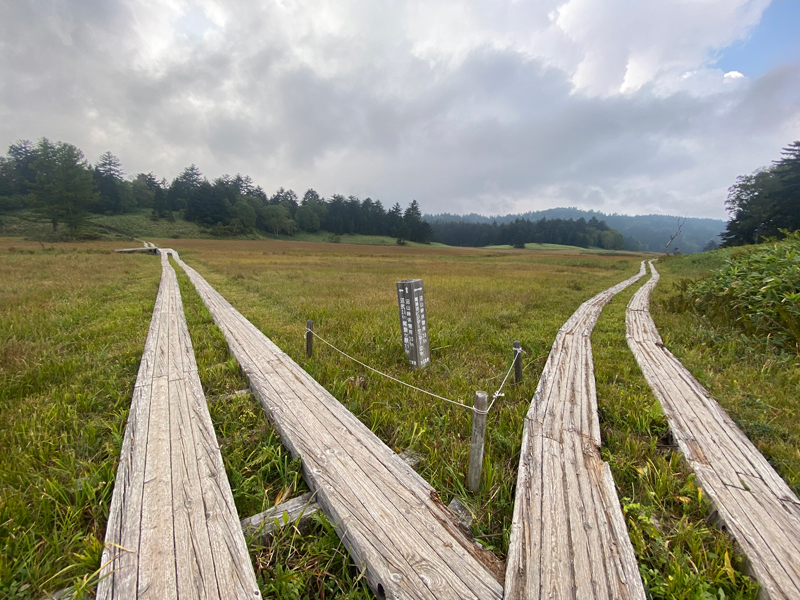 少し先に小淵沢田代と呼ばれる標高の高い池塘・湿原への分かれ道があり、さらに静かで標高の高いエリアへ行くこともできます。