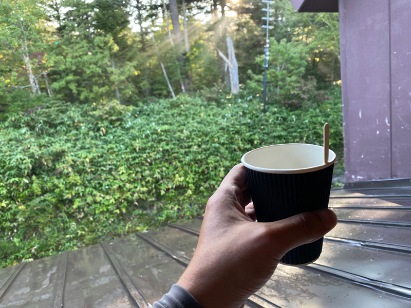 ヒュッテに戻りロビー横にあるコーヒーを頂くことにいたしました。100円で頂くことが出来ます。