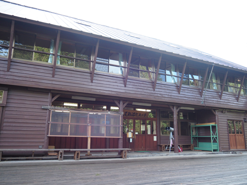 尾瀬沼ヒュッテは尾瀬沼の山小屋エリアの一番奥側(大清水ルート側)にあり少し坂を登ったところにあります。
