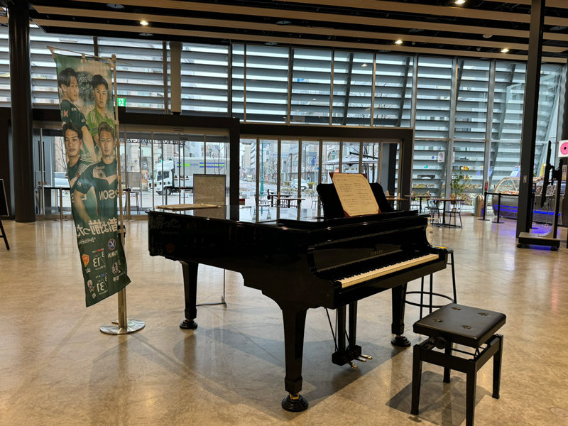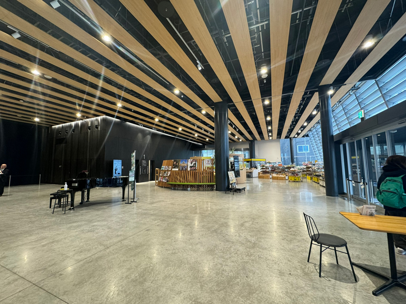 館内に入ると大きなフロアに、グランドピアノが目につきます。そして観光案内所やお土産物屋があります。2階はアウトドアやスポーツ用品、雑貨のお店があり、3階にレストランがあります。